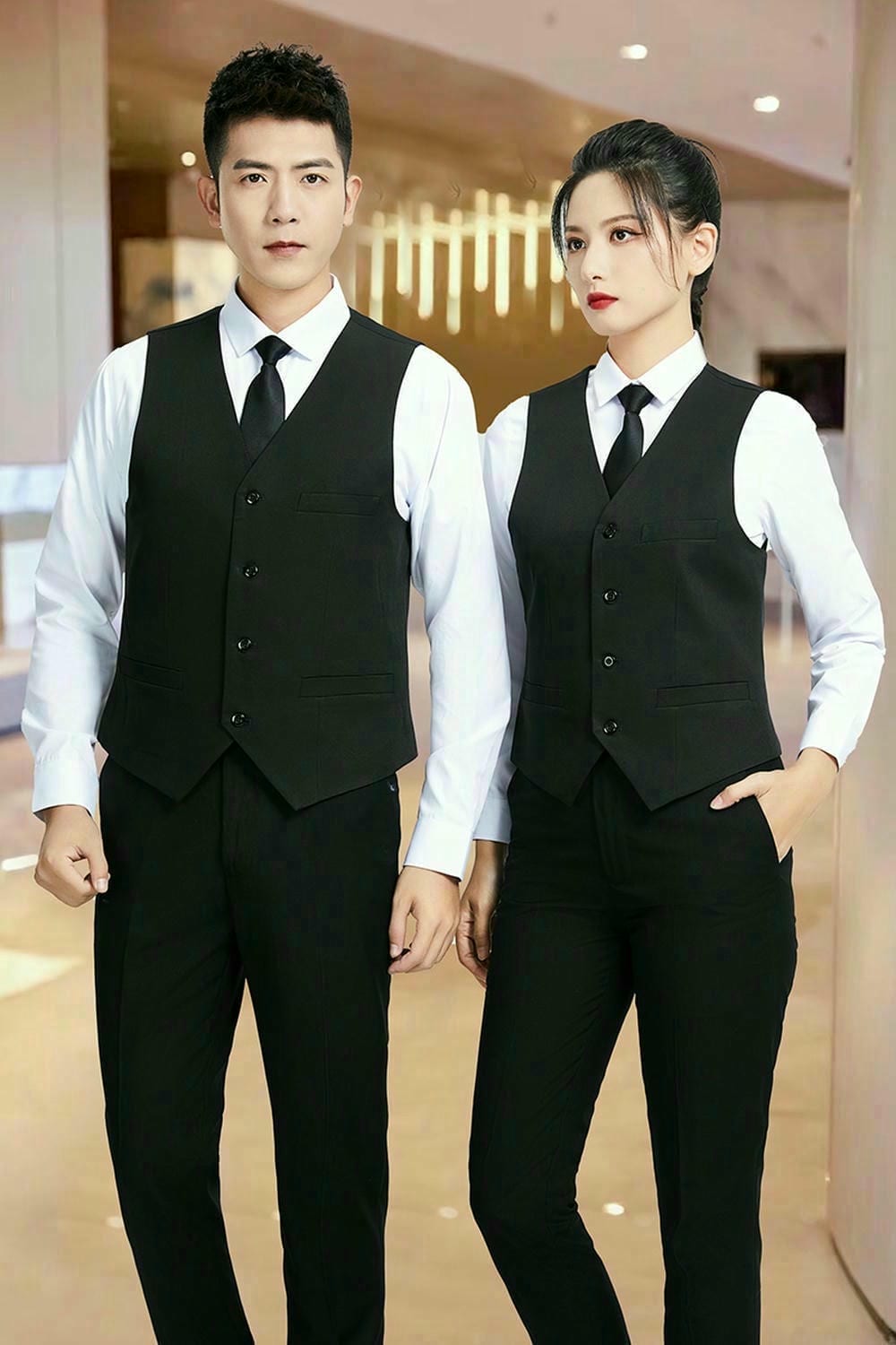 酒店马甲工作服以其独特的设计感和实用性,深受酒店员工的喜爱。它不仅能够展现员工的职业风采,还能在繁忙的工作中提供便捷与舒适。马甲的款式多样,既有传统的西装马甲,也有现代感十足的休闲马甲,可根据酒店的风格和员工岗位的不同进行定制。